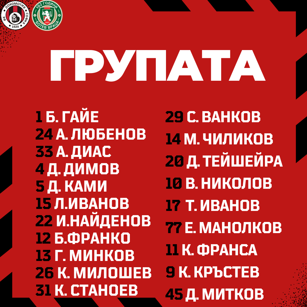 Групата за мача срещу Ботев Враца